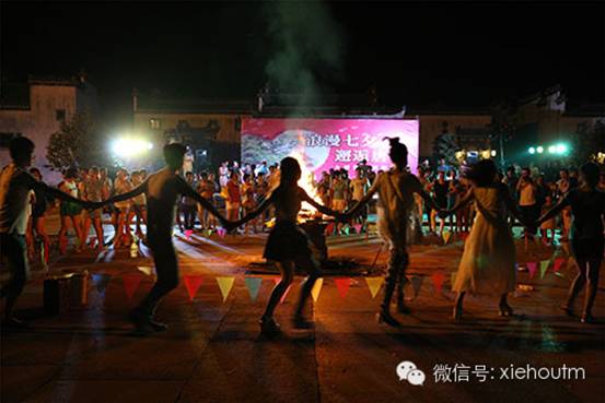 8月2日晚19:30 ,一场规模盛大的“浪漫七夕邂逅唐模”篝火晚会在唐模法国家庭旅馆七天井广场举行。