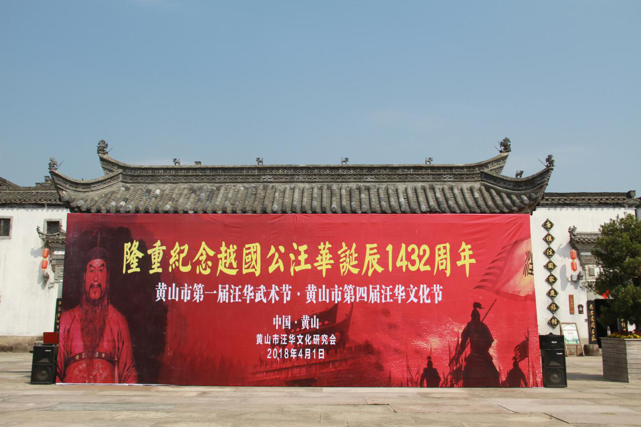 2018年4月1日,为纪念越国公汪华暨汪王诞辰1432周年,思念“古徽州第一伟人”、“徽州的太阳神”、“江南吴王”汪华的历史收获,进一步“打好汪王牌,做好徽文章”,弘扬汪华文化及其精神。有着“徽州第一祭”称呼的“黄山市第一届汪华武术节·黄山市第四届汪华文化节”运动揭幕仪式在唐模景区盛大举行。