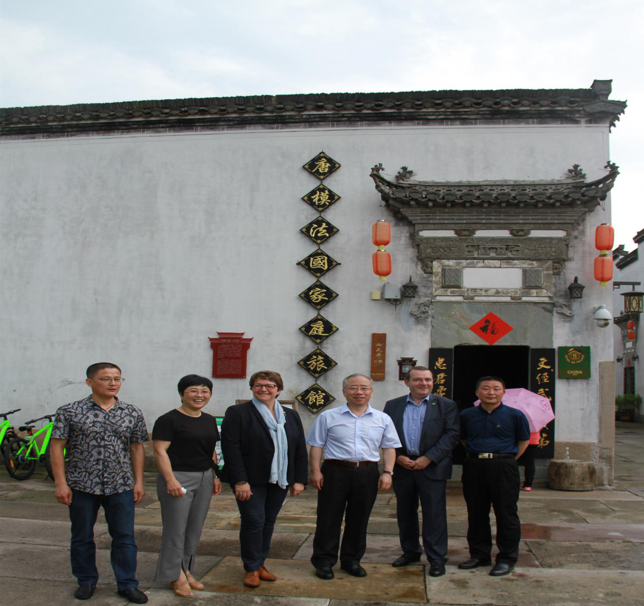 5月20日,法国国民议会第一副议长卡罗尔·布洛·博纳子女士和副议长助理迪迪埃·埃菲尔曼先生在中外洋交学会副会长梁建会、外交学会欧洲部副主任刘明宇及市区外办向导的陪同下考察唐模景区和唐模法国家庭旅馆。