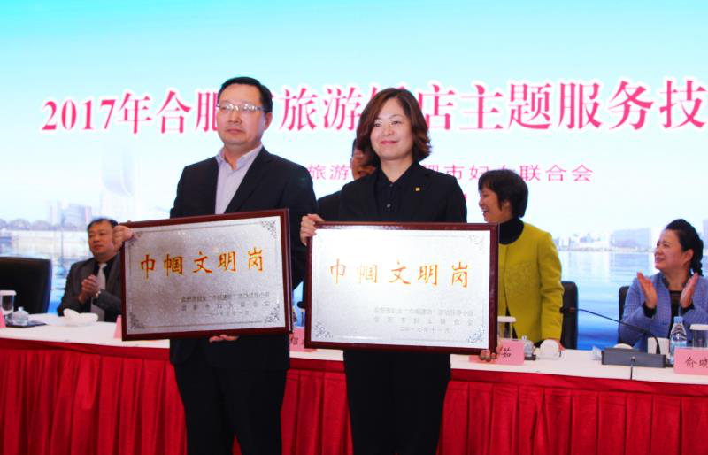 11月7日,在由合肥市百亿游戏局和合肥市妇联配合举行的2017年度合肥市百亿游戏饭店主题服务手艺大赛上,经由强烈角逐,安徽饭店选手依附扎实功力脱颖而出,龚小红获得餐饮二等奖、葛锦秀获得客房优异奖,并获得大赛整体最高奖项“巾帼文明岗”。